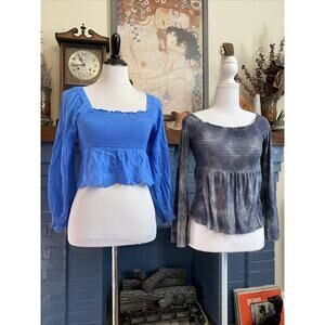 American Eagle S Lot of 2 Women's Tops Ruffle Crop Floral Shirts Peasant Smocked
