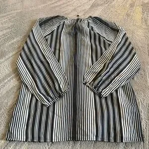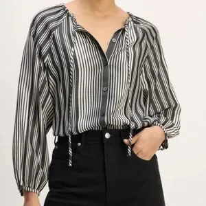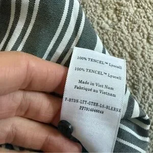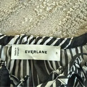 Everlane striped blouse shirt cream bone black button front tie tencel small