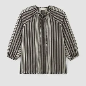 Everlane striped gathered blouse shirt cream bone black button front tie tencel