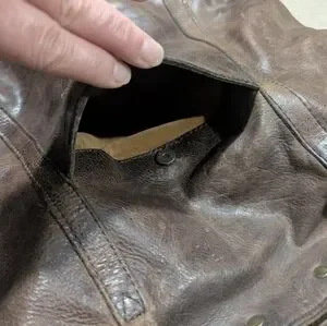 Condition is very very good with light signs of wear. The leather is distressed on this bag.