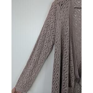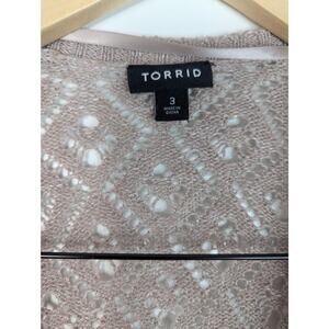 Torrid Pointelle Drape Open Front Sweater Cardigan in Mauve.