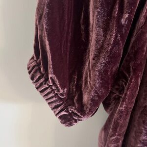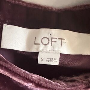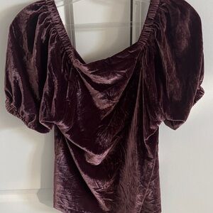 LOFT puff sleeves. This elegant velvet top is perfect for any occasion. The soft fabric and stylish design make it a must-have addition to your wardrobe. Sweetheart neck. Short sleeves with elasticized cuffs.