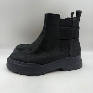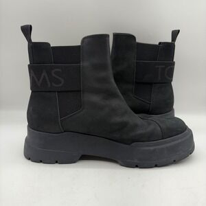 TOMS Alpargata Combat Boots Black Leather Chunky Lug Sole Chelsea Womens 9.5
