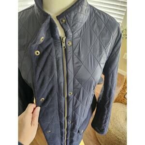 TALBOTS Navy Quilted Mid Length Barn Jacket Size L Equestrian Preppy