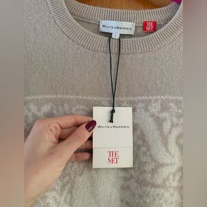NWT New White + Warren Beige Crewneck Sweater Collab with Met Museum of Art