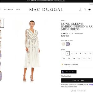 ![NWT Mac Duggal [ 12 ] 9133 Long Sleeve Embroidered Wrap Midi Dress Ivory J1432 - Picture 7 of 14](https://di2ponv0v5otw.cloudfront.net/posts/2025/12/31/69552f22ac1b04e6f2547f1f/m_69552f25ac1b04e6f2548077.jpg)