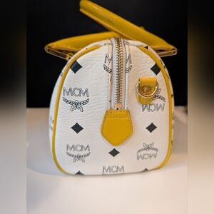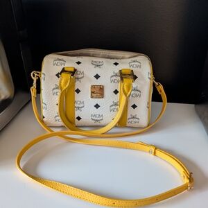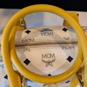 Authentic MCM Visetos Yellow and White Boston Satchel