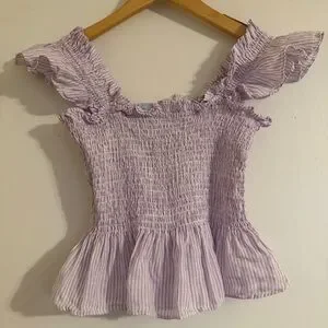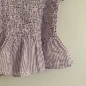 Hill House The Paz Top Linen Women's Size S Lilac Stripe