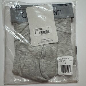 These Calvin Klein gray jockstraps offer a classic fit with a contoured front pouch for enhanced comfort. The light gray cotton material is complemented by a distinctive elastic waistband featuring the iconic Calvin Klein branding. Ideal for everyday wear, these briefs provide a perfect blend of style and functionality.