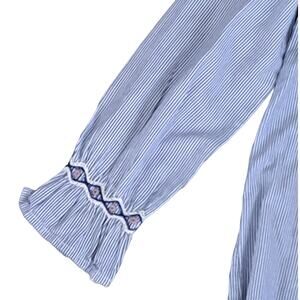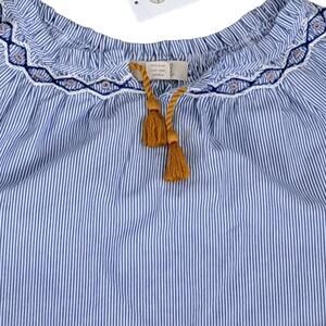 Peek Blue And White Stripe Embroidered Chambray Top Size 10 NWT