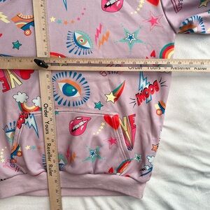 Lola + the Boys Sweatshirt Hoodie Jogger Set Pink Fun Print Girls 14 heart star