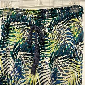 Aerie Women's Pool-To-Party Wide Leg Pant in a palm print, blue and green color scheme, size small,