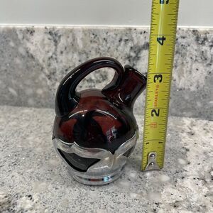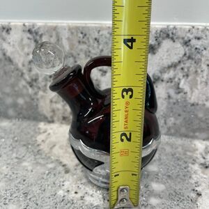 Nice little pitcher often sold as part of a condiment or decanter set. Color glass hard to tell...brownish-purple? See all images for full details. No lid/stopper on this one. I do have another listed with stopper. Bin 20