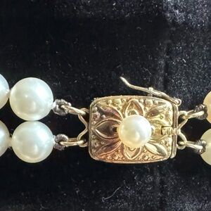 Beautiful Double Strand Mikimoto Akoya Pearl necklace 18” 14k Gold