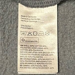 • Material: 60% Cotton, 40% Polyester Fleece (medium-weight, brushed interior)