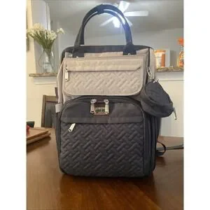 BabbleRoo Diaper Bag Backpack Grey/Blue w/Pacifier case/Changing Pad NEW