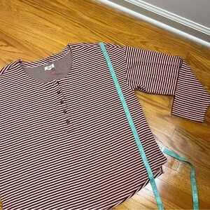 Made of double-faced jersey, this striped henley tee has long drop-shoulder sleeves. Pair it with jeans for a cute, comfy look.