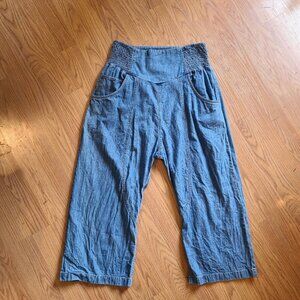 WE THE FREE PEOPLE LUNAN CROP HAREM JEANS PANTS DROP CROTCH SMOCKED BALLOON sz S