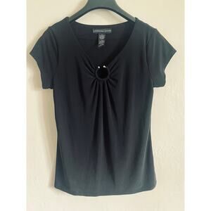 Black Josephine Chaus Y2K slinky black top with cleavage ring size M