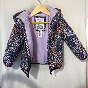 Carter's Kids Girls Floral Puffer Jacket Hooded Lined Navy Pink White