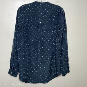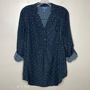 ModCloth PAM BREEZY Blouse Black & White Celestial Stars Roll Tab Sleeves Medium