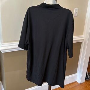 Classic black polo with subtle striped pattern. Features signature logo. Perfect for any occasion. Golf