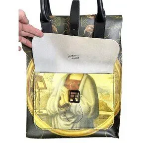 Up for sale is a SUPER RARE Dr Martens Renaissance Print Leather Backpack is a medium-sized bag with a unique art-inspired design. Featuring a top handle in black leather, this backpack is perfect for women who appreciate artistic flair in their accessories. The exterior is made of leather with a multi-colored Renaissance print, while the lining is black leather for a sleek and stylish look. With detachable straps, this backpack offers both fashion and functionality for any occasion.