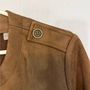 Elegant Tahari blazer with a double-breasted style. Rich brown color. Perfect for formal occasions. Excellent condition! Faux Leather. Very soft!