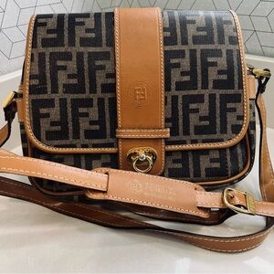 Vintage FENDI Front Flap Crossbody Zucca/Tobacco RARE