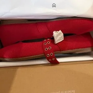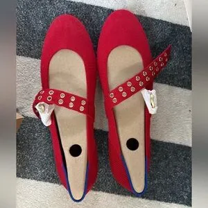 Rothy's Red Mary Jane Flats with Gold Accents