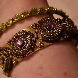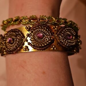 Gold Toned, Purple and Green Gemstones, Two Bracelet Set