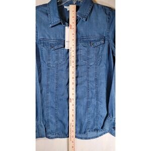 NWT Chico's Split Cuff Denim Pocket Shirt Womens Size 0 Long Sleeve Lightweight