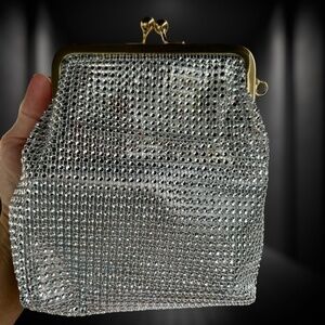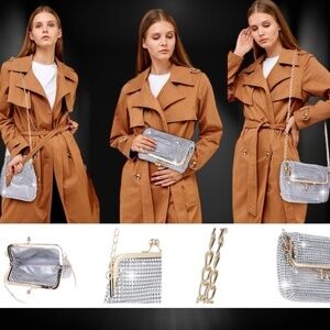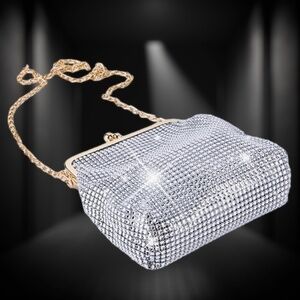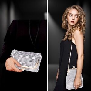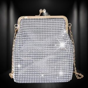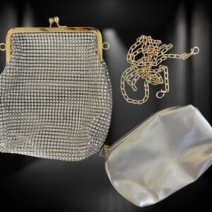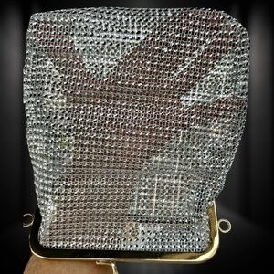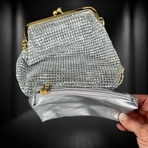 NWT Silver Rhinestone Covered Mesh Clutch/Shoulder Bag w/Gold HW & Pouch Insert