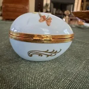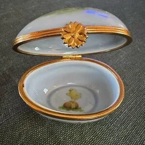 Limoges Decorative Blue and Gold Easter Egg Trinket Box