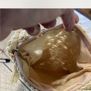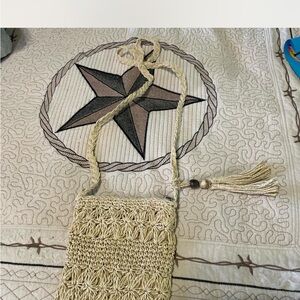 This elegant handcrafted beige crossbody bag is perfect for any occasion. Its intricate design adds a touch of sophistication to your outfit.