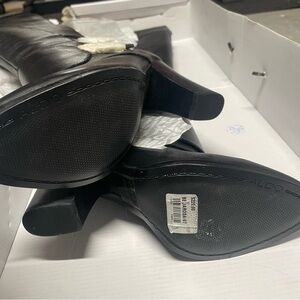 Step out in style with these sleek black leather knee-high boots. Perfect for any occasion, they offer both comfort and elegance.