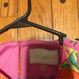 Chic pink dress with vibrant multicolor design. Ideal for summer outings.