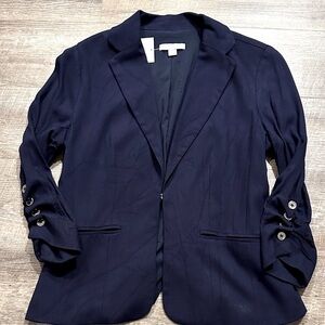 New York & Company Navy Blue rayon blazer with ruched sleeves. Size small