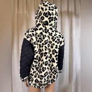 Black & White Leopard Faux Fur Hoodie Jacket (No Brand, Unisex Fit)