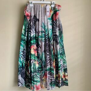 New York and Company 7th Avenue tropical floral & Zebra Print Midi Skirt LG NWT