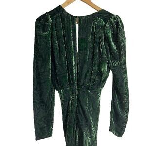 Ronny Kobo Astrid Green Animal Print Velvet Ruched Long Sleeve Midi Dress XS