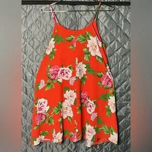 Peach Love California Red Floral Dress small red and pink floral