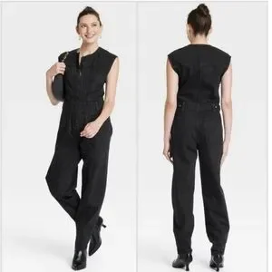 NWT Universal Thread™ Tailored Denim Jumpsuit - Black: Sleeveless, Relaxed Leg, Front Zipper