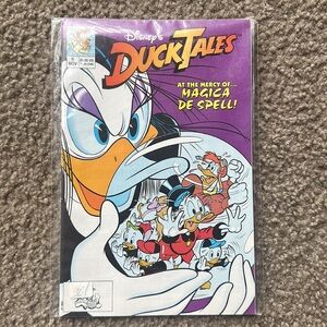 Collection of four Disney comics. Features Uncle Scrooge, Mickey Mouse, and DuckTales. Bright and colorful illustrations.