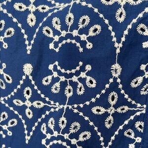 Stylish blue shirt with intricate white designs. Ideal for any occasion.