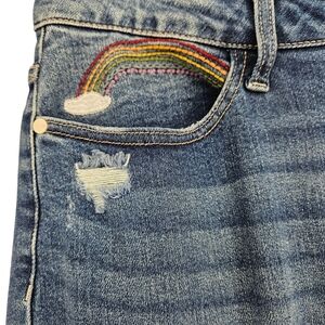 Judy Blue Straight Jeans Embroidered High Rise Distressed Medium Wash Denim 14W