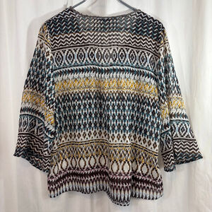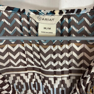 Ariat Boho Sheer Geometric Print Brown Teal Peasant Blouse Size M