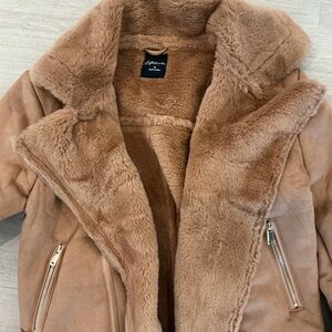 Cozy camel teddy jacket. Soft texture. Stylish and warm.