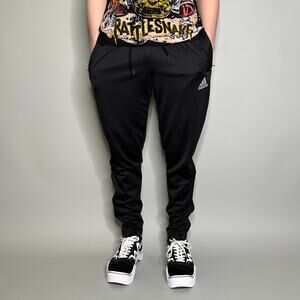 Vintage Y2K Adidas Joggers Mens M Soccer Style Slim Fit Jet Black Sweatpants
