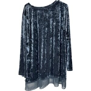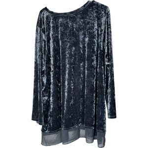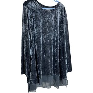 LOGO Lori Goldstein Crushed Velvet Long Sleeve Tunic Top 4X Charcoal Sheer Hem